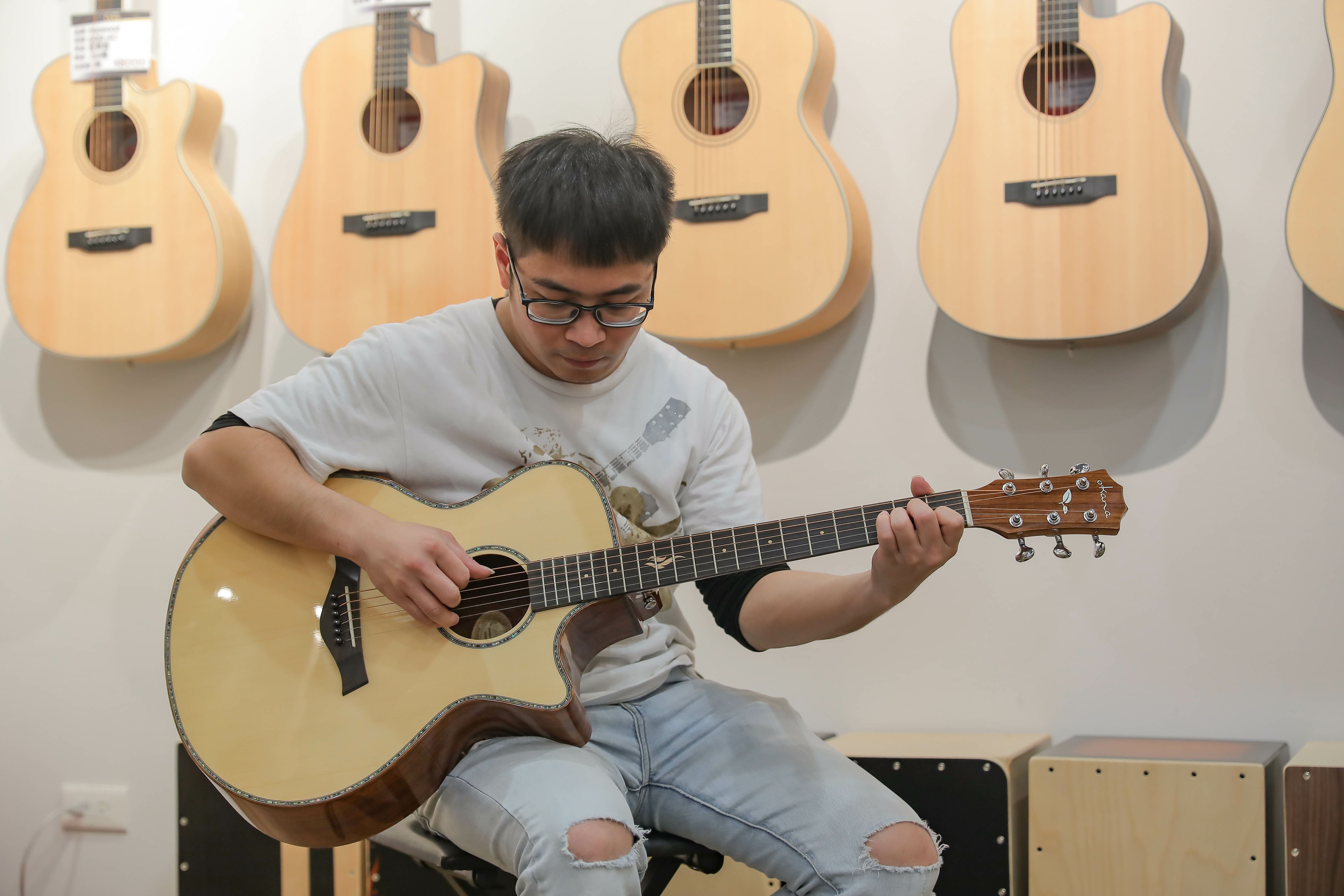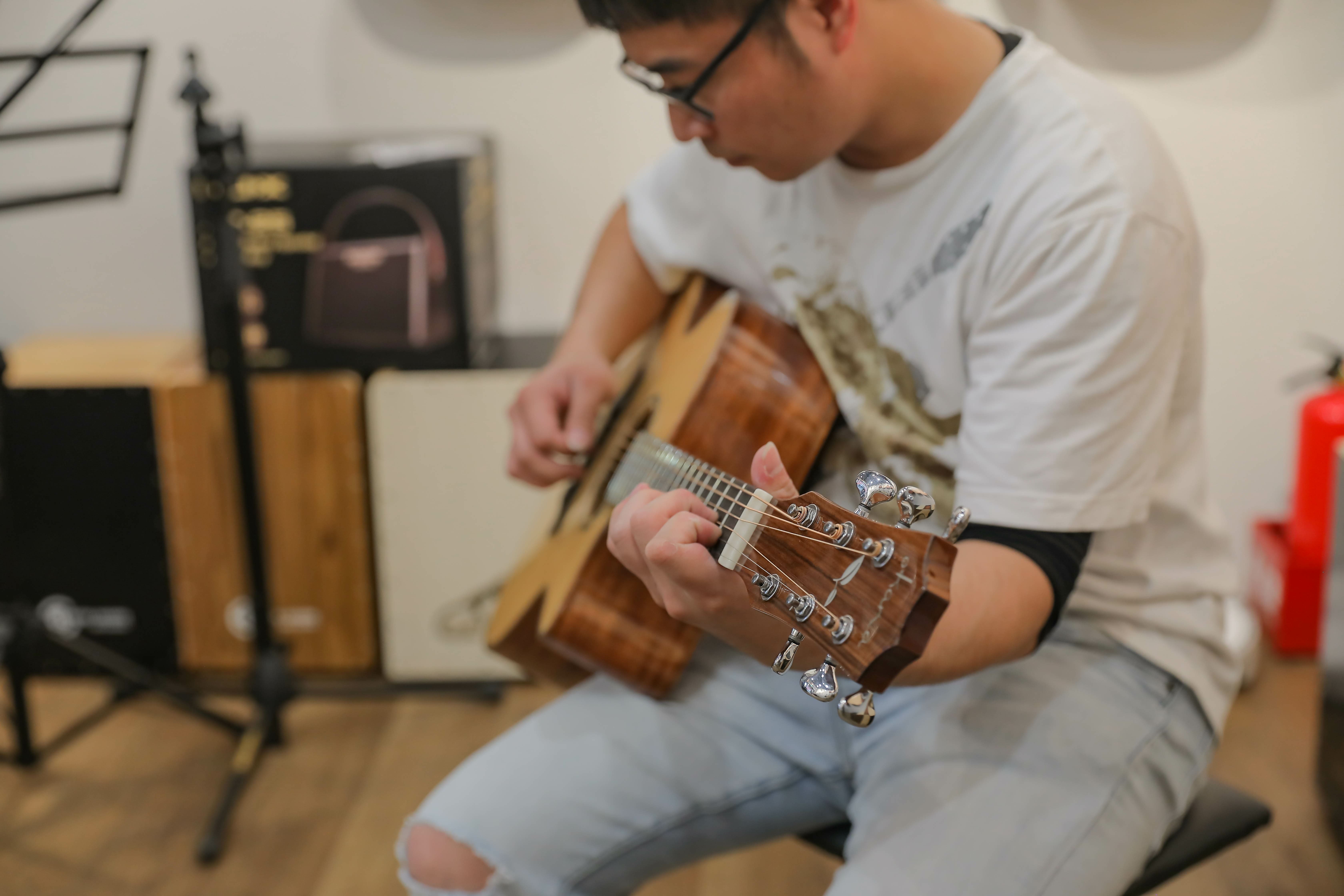 剛好拍照那天我有點忙,因此朋友就幫我記錄下來正在認真調整吉他的模樣。
